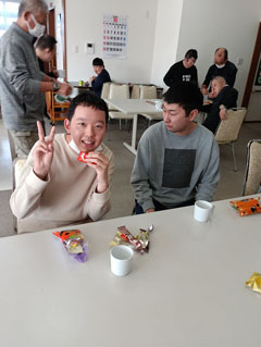 午後は悪天候のため、ゆうらくに帰ってきてから飲食しました。記念撮影にも積極的に参加し、皆さん笑顔が見られていました。