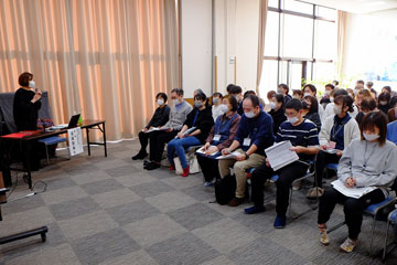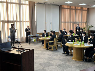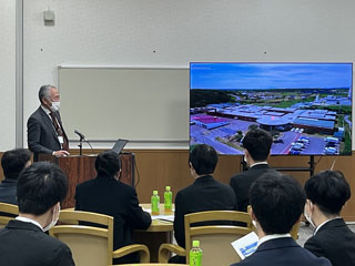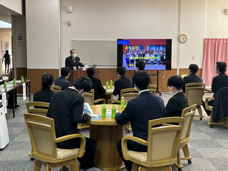 見学会では、高橋常務理事からの歓迎挨拶に続き、稚内市から長寿あんしん課岡田主査より稚内市の紹介。施設長による緑風苑の紹介。担当者による雇用条件等の説明に続き、令和2年より同校卒業した先輩の稚内はまなす学園曾徳弘生活支援員より、「外国人として働くための心構え」等について5年余りの経験を基に貴重な話を留学生の皆さんは真剣に聞いていました。
